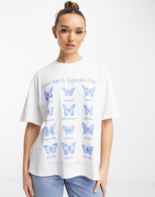ASOS DESIGN oversized heavy weight t-shirt in butterflies graphic in white