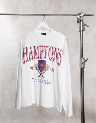ASOS DESIGN oversized heavyweight long sleeve T-shirt in white with collegiate print