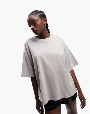 ASOS DESIGN oversized heavyweight T-shirt with side splits in gray heather