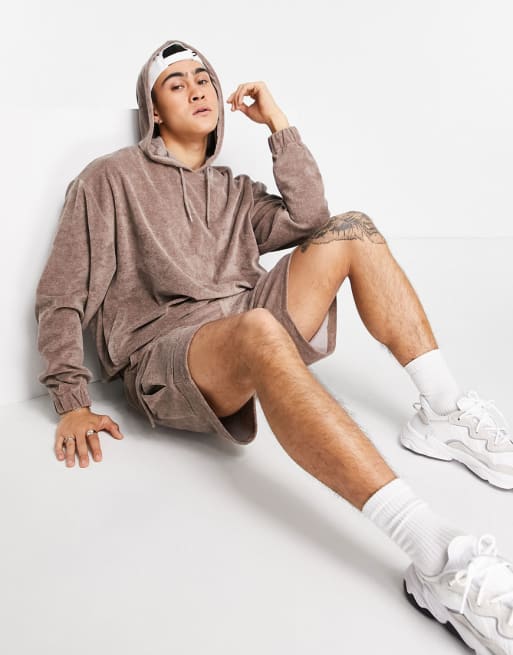 ASOS DESIGN oversized hoodie and shorts set in heather terrycloth