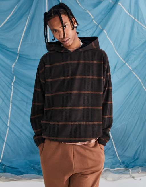ASOS DESIGN oversized hoodie in brown check brushed texture