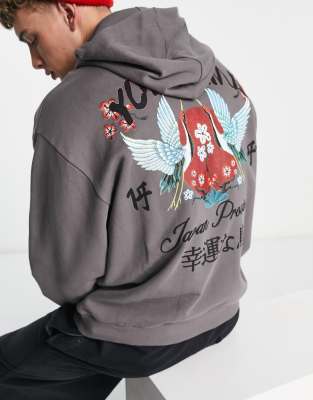 ASOS DESIGN oversized hoodie in dark gray with souvenir back print