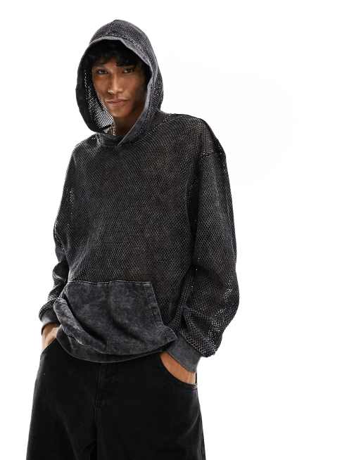 ASOS DESIGN oversized hoodie with all over net detail in washed black
