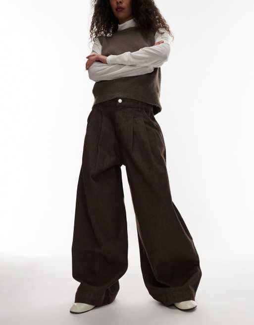 ASOS DESIGN oversized horseshoe jeans in dark brown