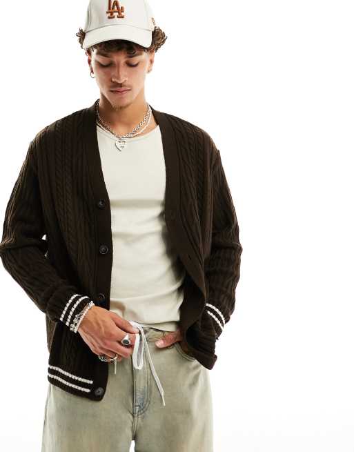 ASOS DESIGN oversized knit cable cricket cardigan in brown