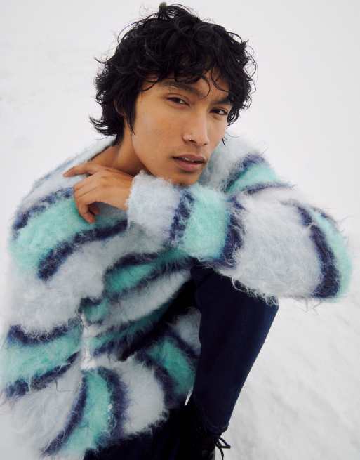 ASOS DESIGN oversized knit extreme fluffy sweater in blue stripe