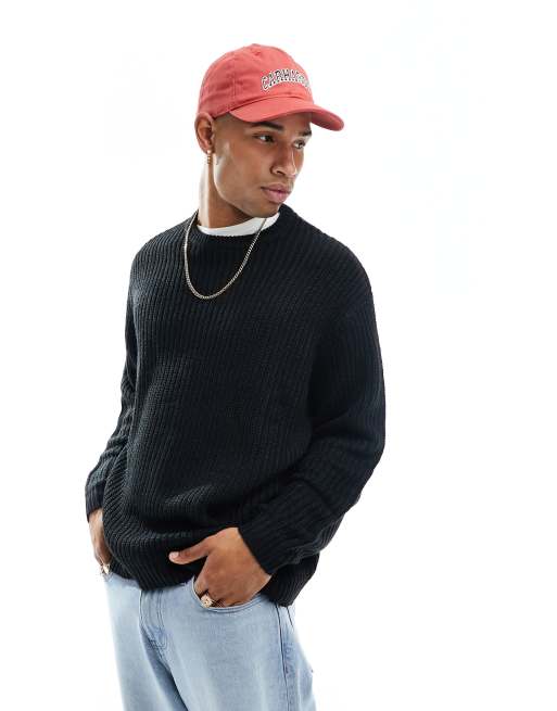 ASOS DESIGN oversized knit fisherman ribbed crew neck sweater in black