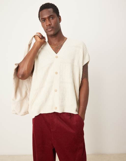 ASOS DESIGN oversized knit sleeveless cardigan with texture in ecru