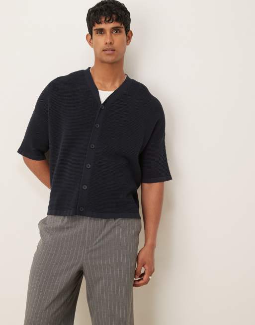 ASOS DESIGN oversized knitted baseball button through shirt in navy