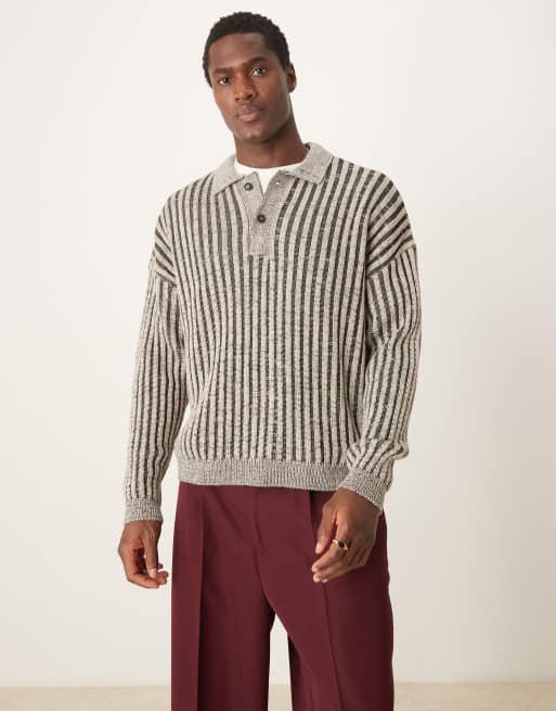 ASOS DESIGN oversized knitted boxy polo sweater in beige rib