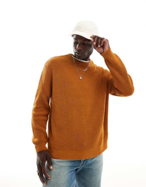 ASOS DESIGN oversized knitted fisherman rib sweater in tan