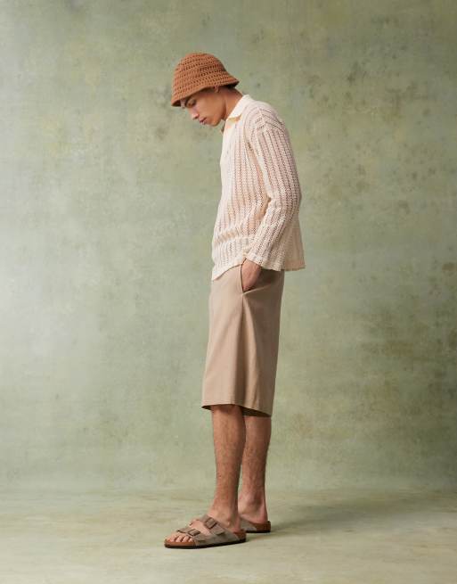 ASOS DESIGN oversized linen blend dressy bermuda shorts in dark stone