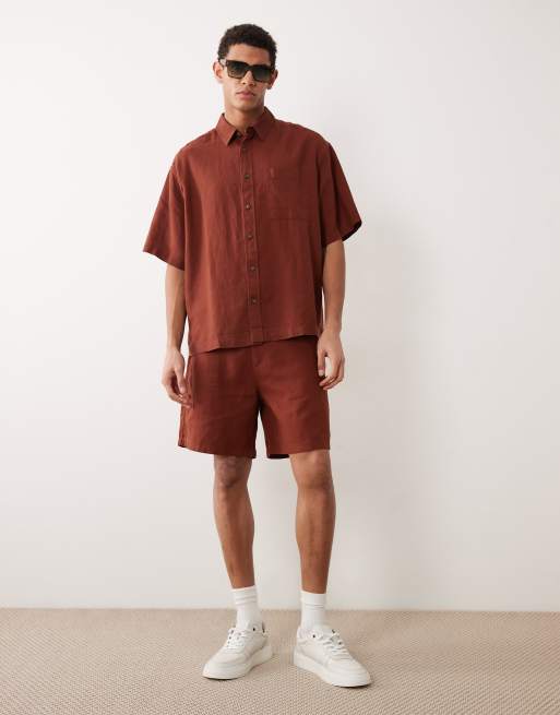 ASOS DESIGN oversized linen blend shirt in brown - part of a set