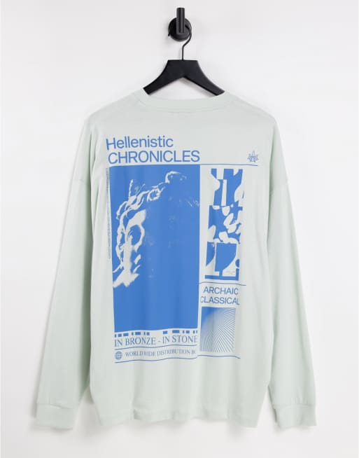 ASOS DESIGN oversized long sleeve t-shirt in off white with statue back print in blue