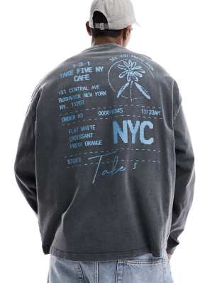 ASOS DESIGN oversized long sleeve T-shirt in washed black with back receipt print