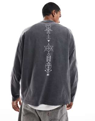 ASOS DESIGN oversized long sleeve T-shirt in washed black with celestial spine print