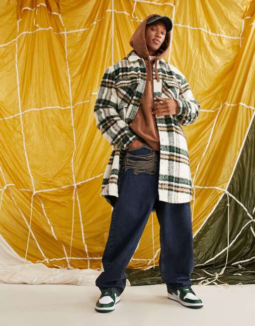 ASOS DESIGN oversized longline plaid shacket in beige
