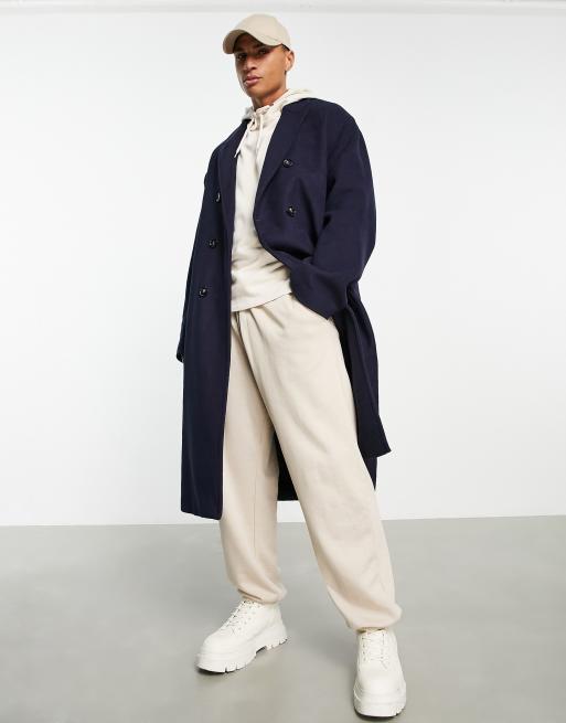 ASOS DESIGN oversized longline wool mix overcoat in navy