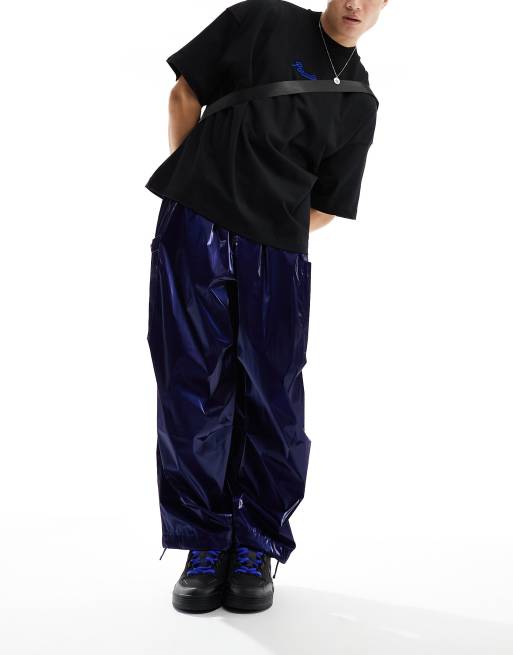 ASOS DESIGN oversized parachute cargo pants in metallic blue