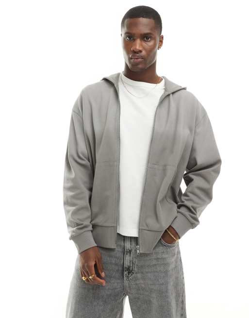 ASOS DESIGN oversized pique washed zip through hoodie in gray