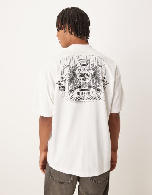 ASOS DESIGN oversized polo shirt with back and front crest print in cream