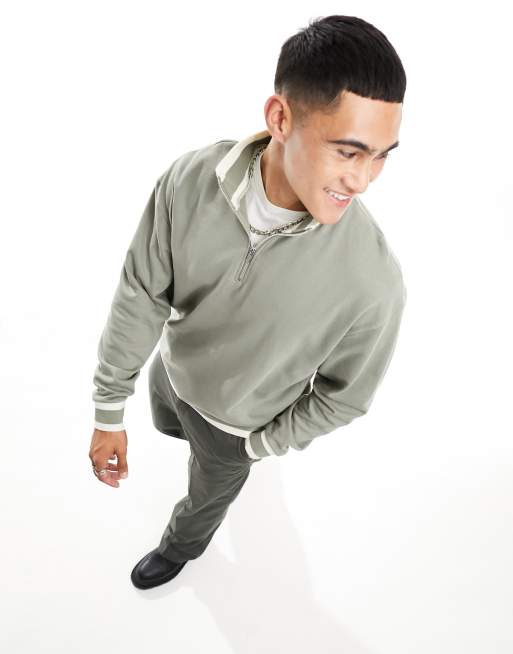 ASOS DESIGN oversized quarter zip sweatshirt with tipping in green