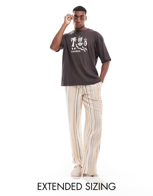 ASOS DESIGN oversized ribbed texture T-shirt in brown with celestial front print