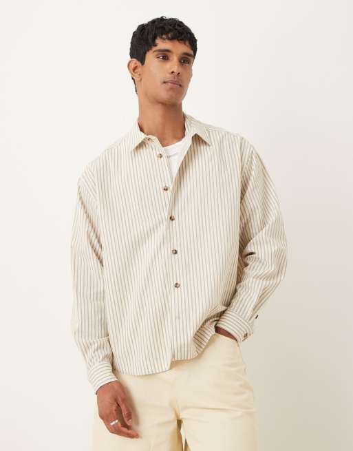 ASOS DESIGN oversized shirt in beige stripe