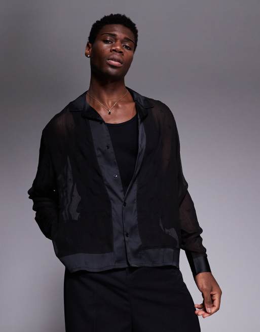 ASOS DESIGN oversized shirt with camp collar and embroidery in black