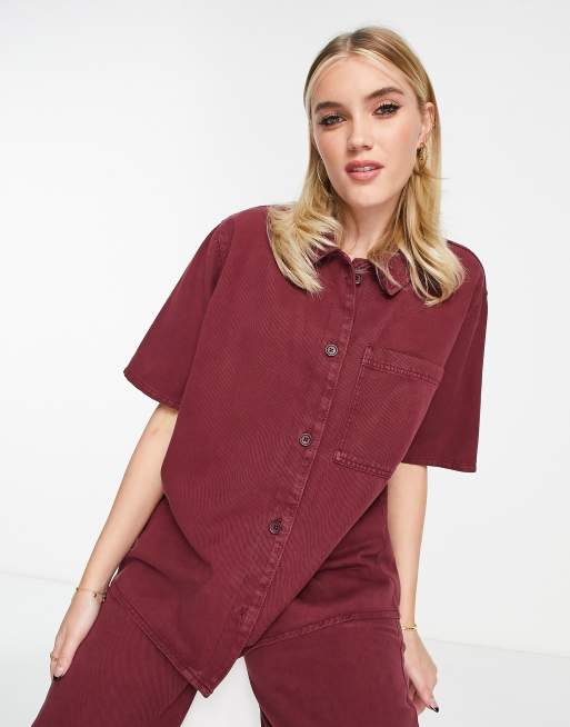 ASOS DESIGN oversized shirt with contrast stitch in wine - part of a set