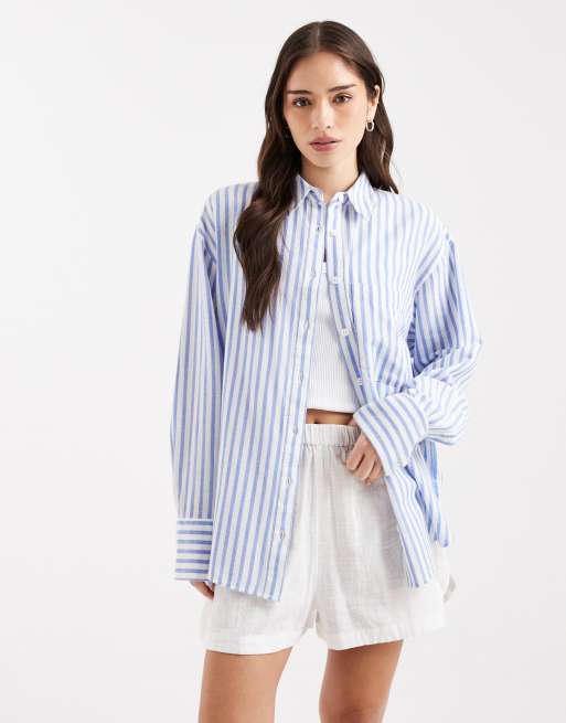 ASOS DESIGN oversized shirt with linen in blue stripe