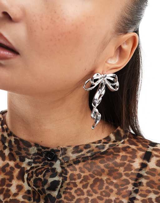 ASOS DESIGN oversized stud earrings with bow detail in silver tone