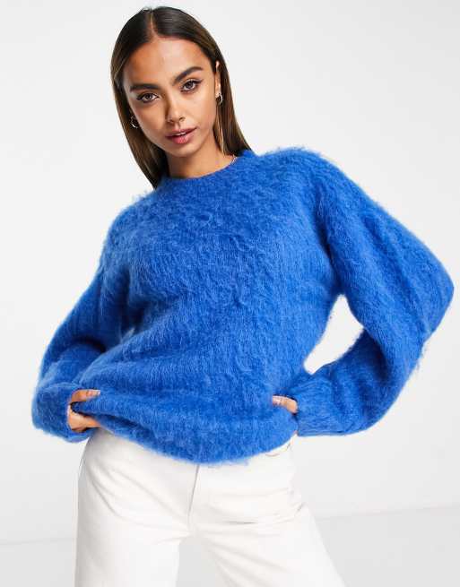 ASOS DESIGN oversized sweater in brushed yarn in cobalt blue