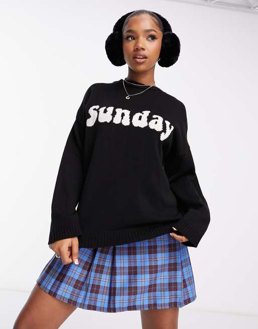 ASOS DESIGN oversized sweater with Sunday text pattern in black