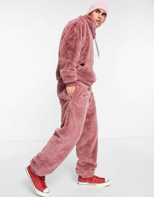 ASOS DESIGN oversized sweatpants in pink faux fur