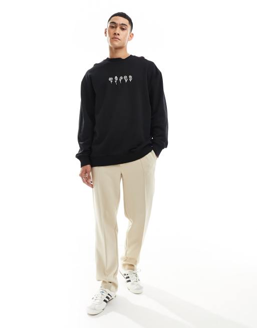 ASOS DESIGN oversized sweatshirt in black with floral embroidery chest print