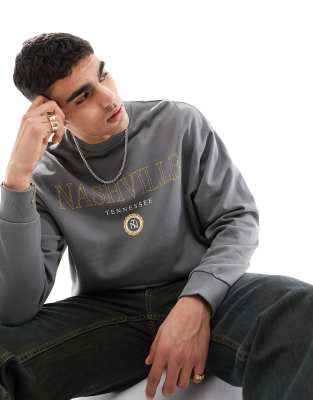 ASOS DESIGN oversized sweatshirt in dark gray with city print