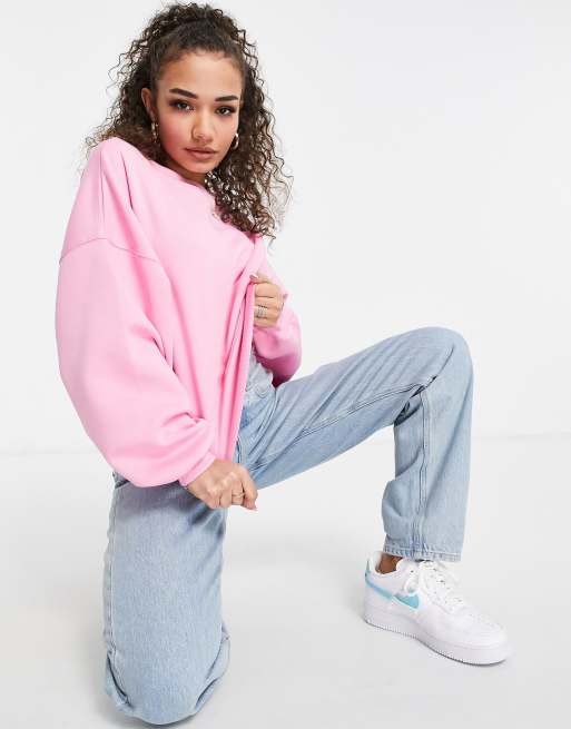 ASOS DESIGN oversized sweatshirt with chunky rib in pink