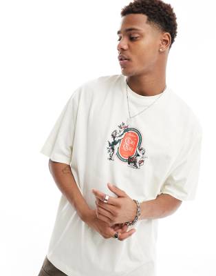 ASOS DESIGN oversized t-shirt in beige with front cherub prints