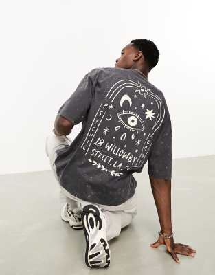 ASOS DESIGN oversized T-shirt in black acid wash with abstract art back print