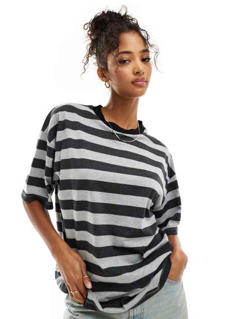 ASOS DESIGN oversized t-shirt in black and gray stripe