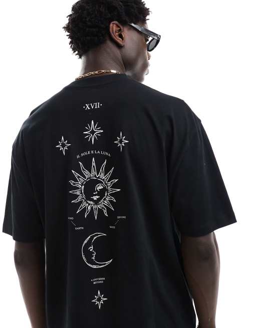 ASOS DESIGN oversized T-shirt in black with celestial spine print