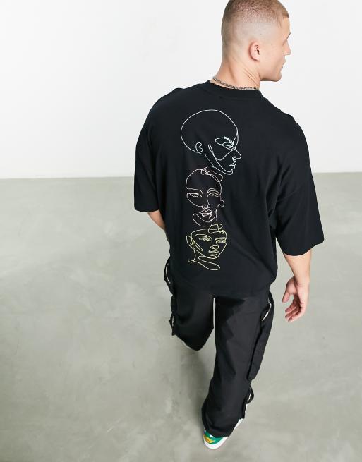 ASOS DESIGN oversized t-shirt in black with line drawing back print