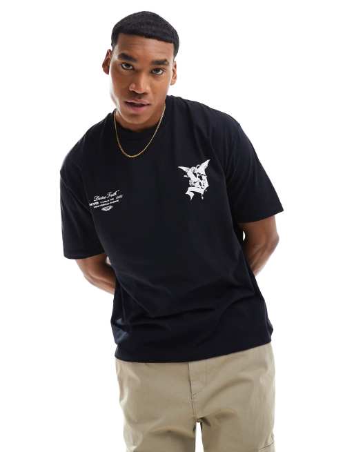 ASOS DESIGN oversized t-shirt in black with street chest prints