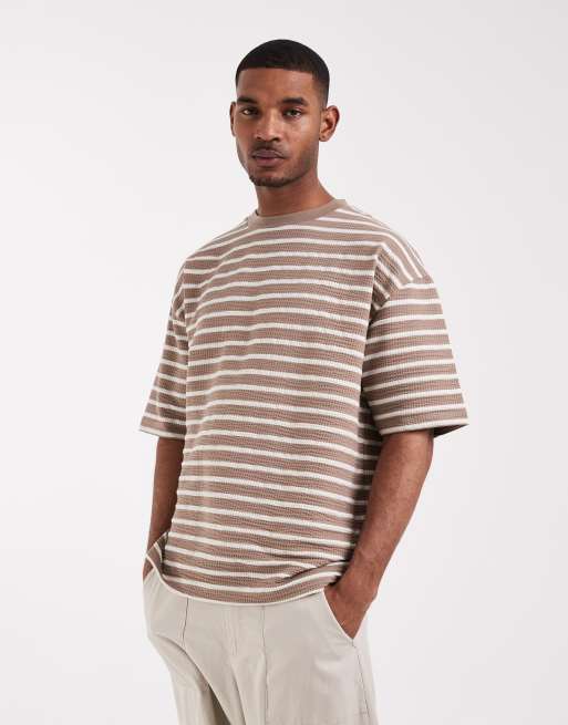 ASOS DESIGN oversized T-shirt in brown seersucker fabric.