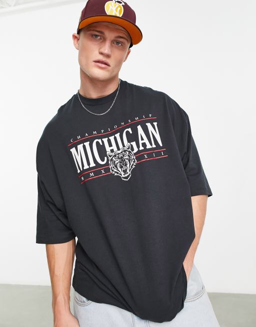 ASOS DESIGN oversized t-shirt in dark gray with collegiate front print