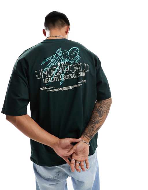 ASOS DESIGN oversized t-shirt in green with cherub back print