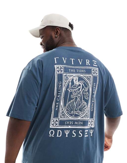 ASOS DESIGN oversized t-shirt in navy with back renaissance print