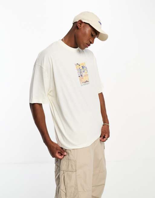 ASOS DESIGN oversized T-shirt in off white back front scenic print