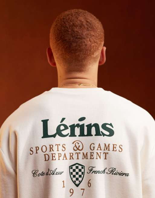 ASOS DESIGN oversized t-shirt in off white texture with varsity back print
